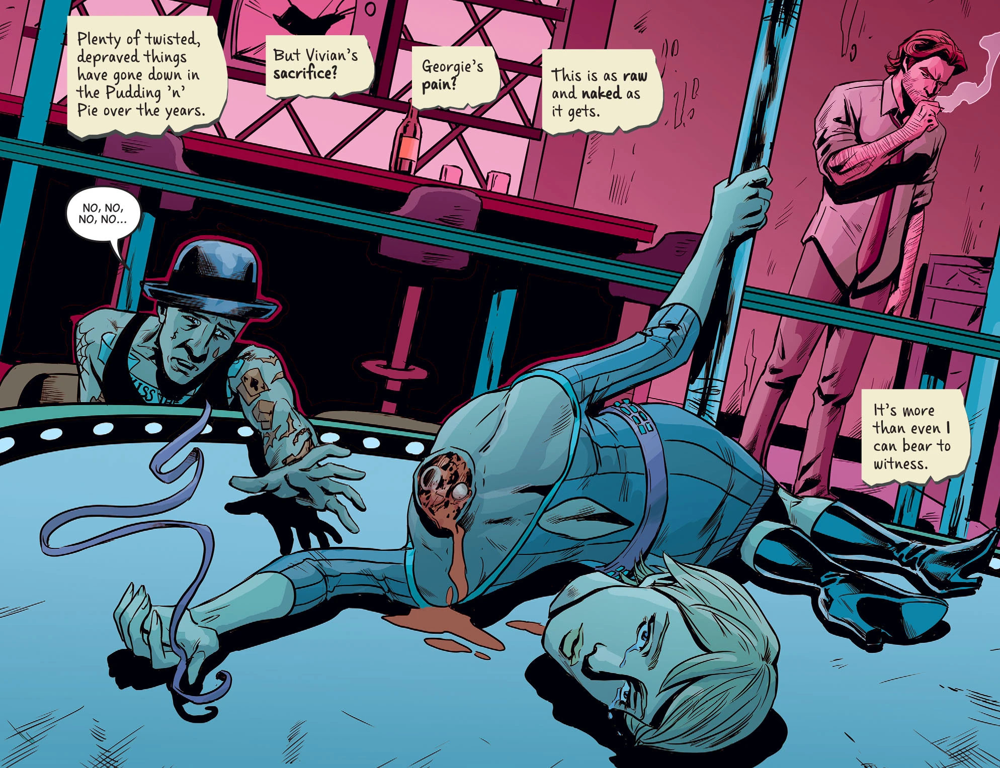 Bigby notices the same kind of ribbon on[5] Nerissa's fellow prostitute[13] Vivian and asks her who put it on her. She says, "My lips…", so Bigby interrupts her and says, "No. I get it."[5]