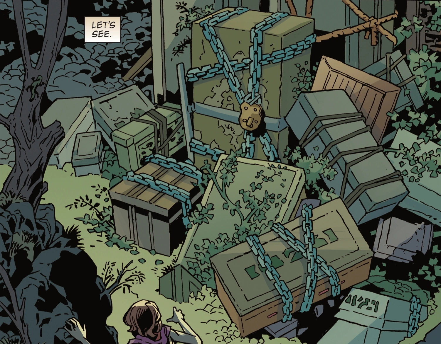 Herne and his son are released by Blossom Wolf, who comes across a set of abandoned boxes while exploring the Black Forest of the Hesse.[11] She believes that the boxes are treasure chests, and tries to open one of them, to no avail. Suddenly, she hears a mysterious voice, encouraging her to break the lock open.[12]