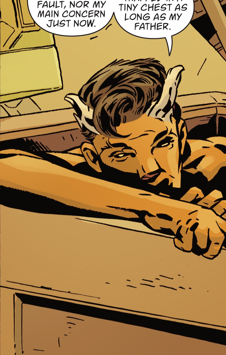 Totenkinder manages to trap Mister Dark in a gold statue.[10] Meanwhile, Beast has been helping Dunster Happ create a new box to imprison him in, but it is still a good two or three weeks away from being ready.[2] Unfortunately, Mister Dark breaks free from the gold[10] before they get the chance to use it.[2]