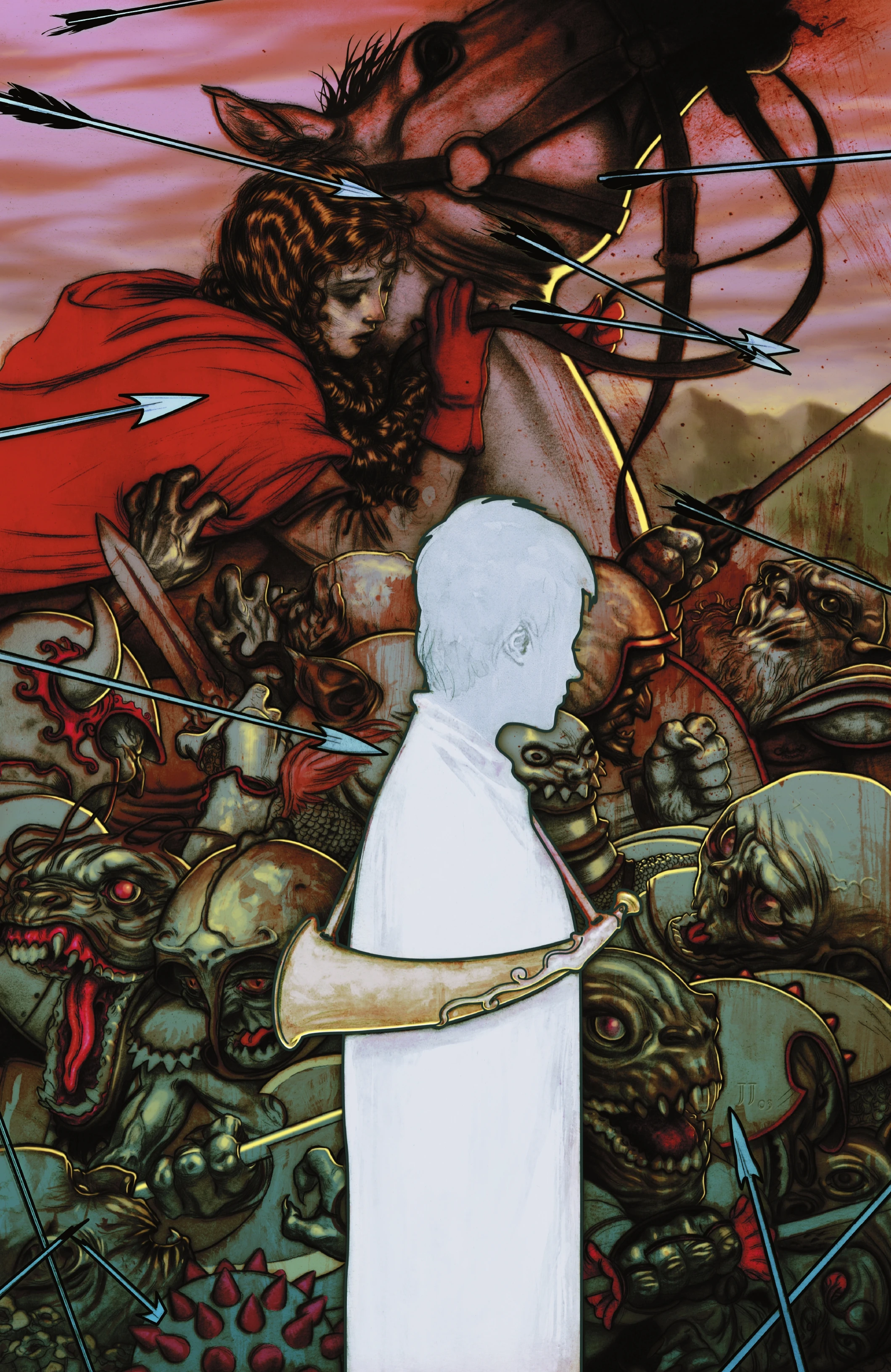On a lazy afternoon in the Woodlands business office, Boy Blue plays a melancholy tune on his horn. At first, Snow White thought he was practicing for another club gig. He reminds her that today is the Ides of May, a special day when he and a few other Fables meet at the local pub and remember their final escape from the Homelands. Only those who were at the final battle were invited. Snow White apologizes for forgetting, knowing this day always put Boy Blue in a somber mood. Since it was unlikely any work would get done tonight, she asks Blue to tell her his tale...