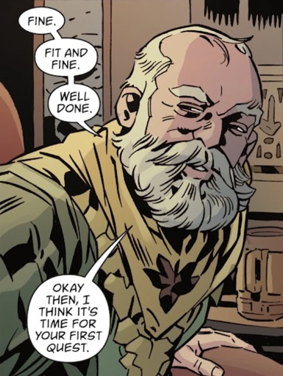 As Jack diligently studies one evening, the elder Jack reflects on her progress and decides it's time for her first quest, one that will take her far from the familiar surroundings of their house. He suggests she consider who she wants to bring with her as a companion, since Jack in the Green always has one.[6]