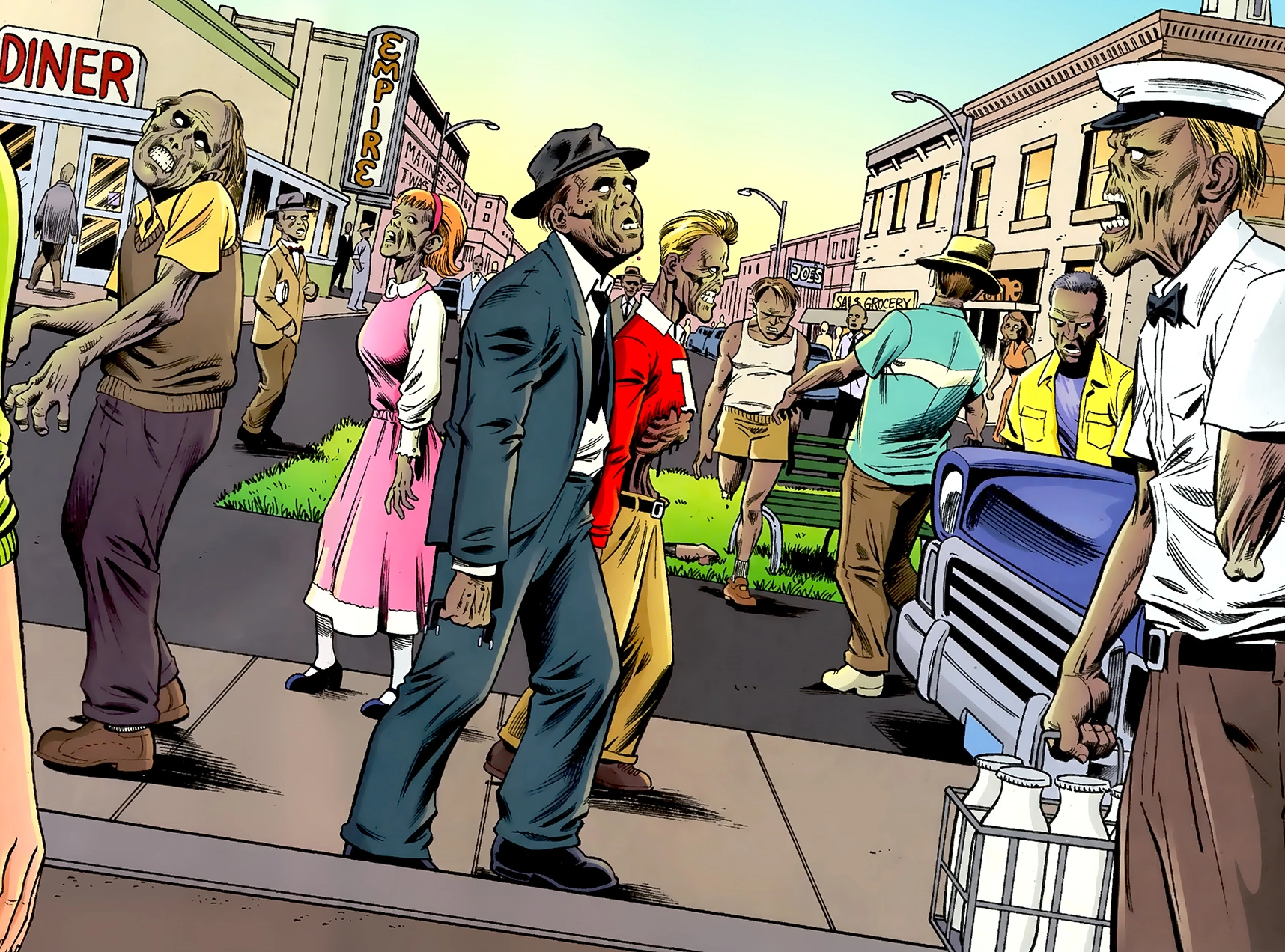 | Zombies are undead being created through the reanimation of a corpse. They first appear in Jack of Fables #18 — "Americana, Part 2: Welcome to Americana — Mind the Zombies." | |