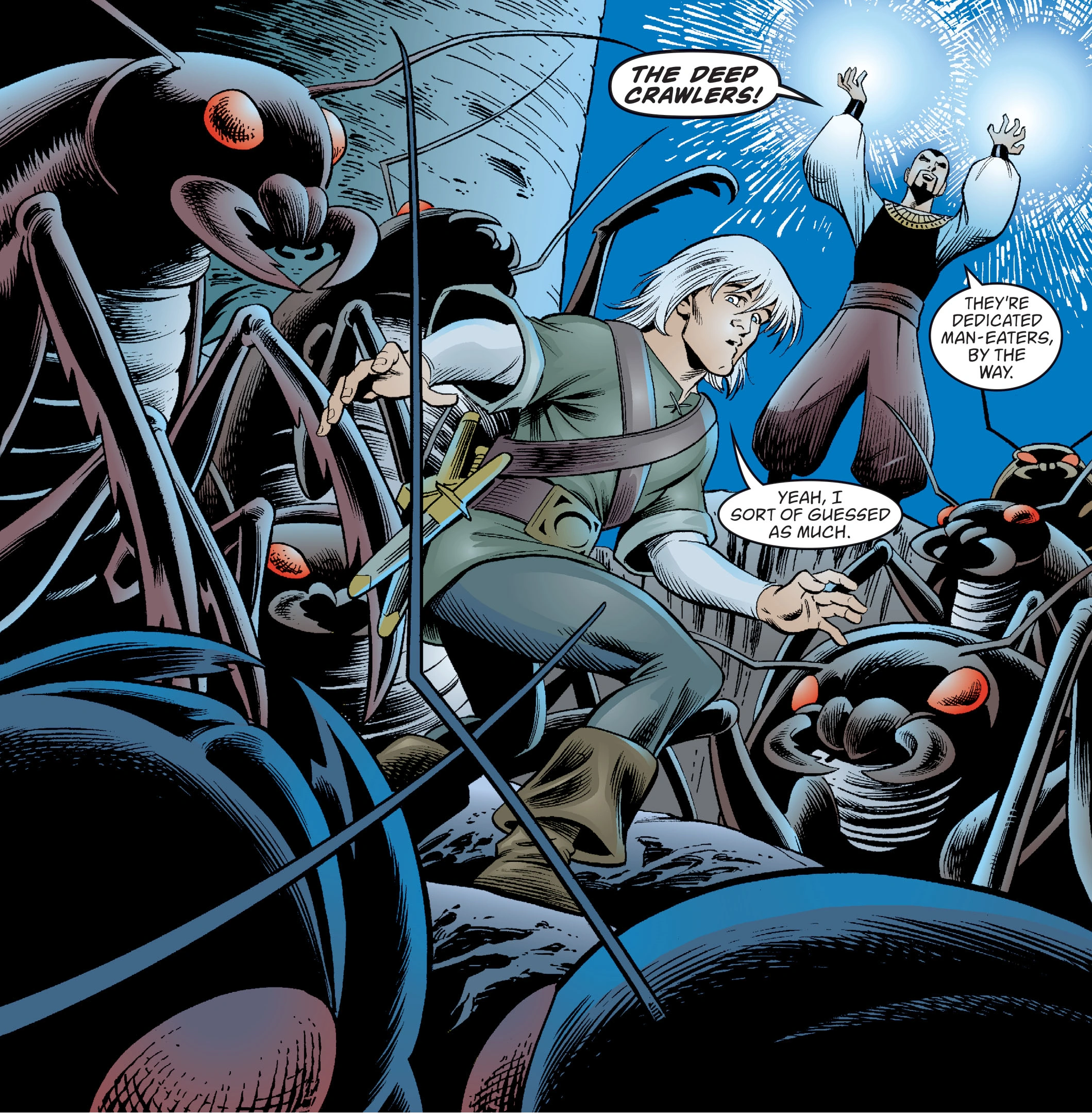 | The deep crawlers appear in Jack of Fables #40 — "Jack Dragon: The New Adventures of Jack and Jack, Part 4 of 4." They are large and monstrous insects the size of a hay cart, that live underground. With their formidable jaws capable of tearing into human flesh, they are known to devour humans. Deep crawlers were summoned in a horde by a sorcerer to attack Jack Frost. | |