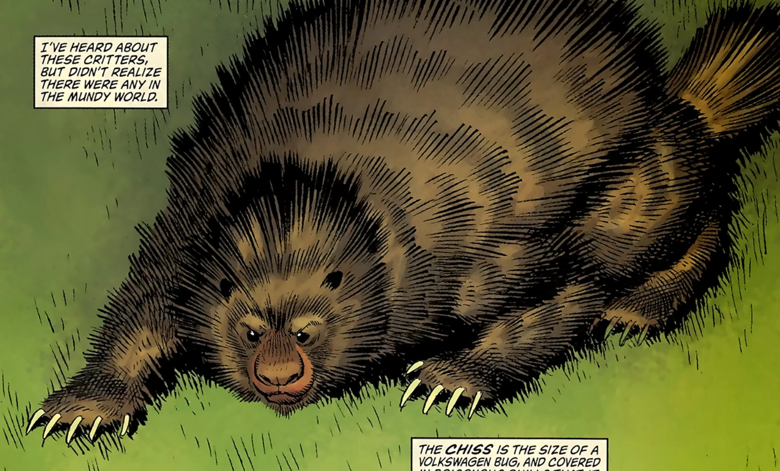 | The Chiss are enormous creatures the size of a Volkswagen, who are covered in poisonous quills which they can shoot out of their body at will. They can only be found in Oz.[20] They debut in Cinderella: Fables Are Forever #1 — "Part One." | |