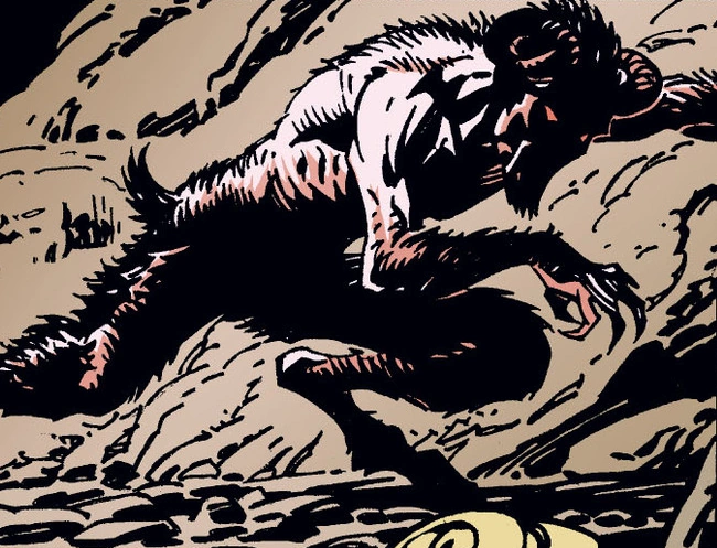 | Wendigos are monstrous creatures who first appear in Fables #124 — "After." Lily Martagon and Bufkin once caught and caged a being known as Zorgo Quoot, the Gentleman Wendigo,[68] while Blossom Wolf once hunted and slayed a creature known as the Manaha Wendigo in Yankum.[24] While not referred to as such, the Fabletown incarnation of the Jersey Devil possesses the typical physical characteristics of the folkloric version of the wendigo.[69] | |