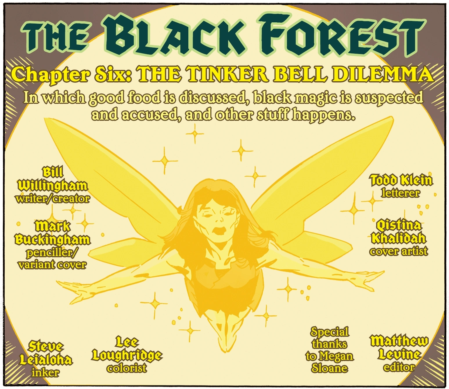 | The pixie debuts in Fables #151 — "The Black Forest Chapter One: Greenjack," and is identified by Blossom Wolf in Fables #160 — "The Black Forest Chapter Ten: Tremble," and Jack in the Green in Fables #162 — "The Black Forest Chapter Twelve: Rightful Prey," both of which refer to Tinker Bell as a pixie. | |