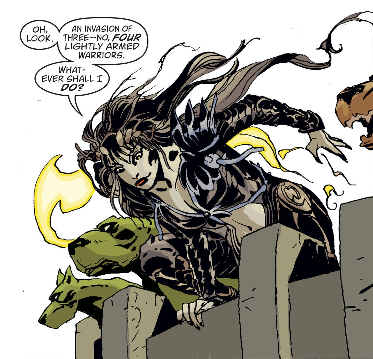 One of the Chiss appears on Dorothy Gale's side in the mundane world as she plots her revenge on Cinderella.[21] She proceeds to transports the creature to Thailand, which leads to the creature's fatal assault on Meng Chiang-Nu of Shadow Fabletown. When the Chiss attempts to attack Cinderella, she has no choice but to fight back and slay the beast in order to protect herself.[20] | |