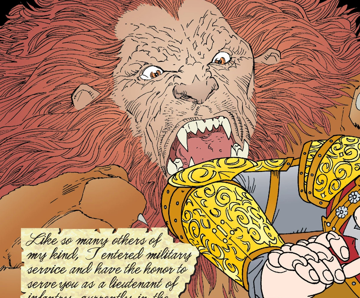 | The Kalidahs first appear in Fables #109 — "Cardinal Virtues: Chapter Two of Inherit the Wind." They're a feline species from Oz, sporting the head of a tiger, the body of a bear, and claws that are as long as they are sharp. They were working for the Nome King, but joined Bufkin's revolution in Oz because they were tired of being made to sleep in filthy cages when off-duty.[33] | |