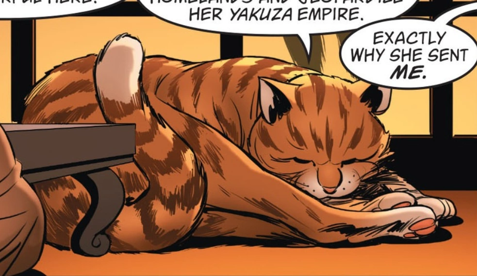 Although it is not stated in the comic, Neko is a bakeneko ("changed cat"), a creature from Japanese folklore, known for its long tail and shapeshifting capabilities. | ||
