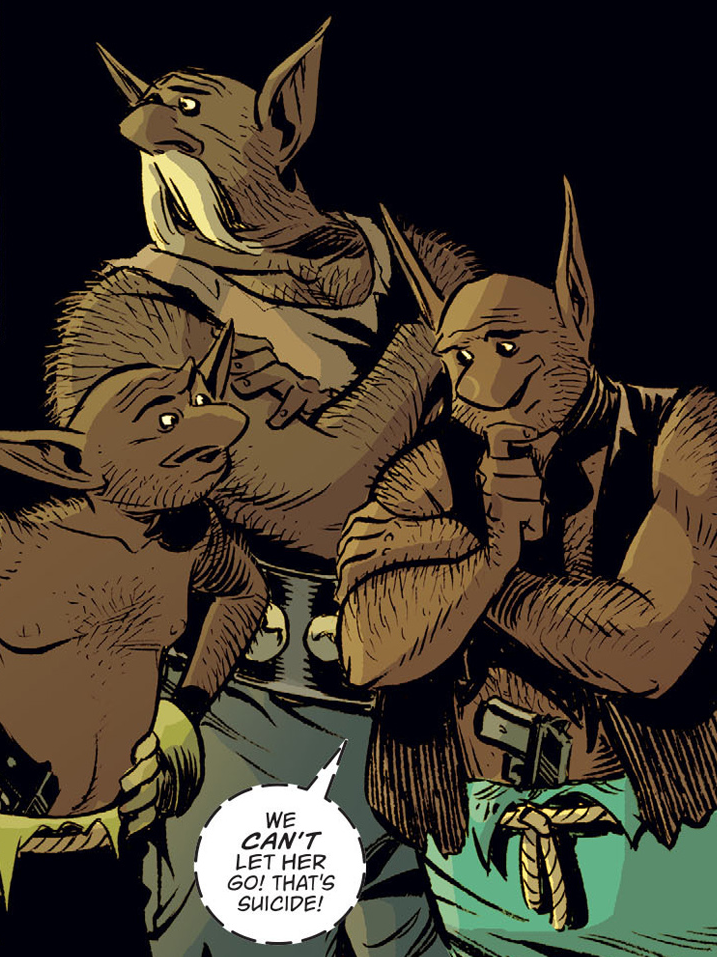| Ghols are flesh-eating shape-shifters introduced in Cinderella: From Fabletown with Love #2 — "Part Two: An Arabian Knight." According to Aladdin in Cinderella: From Fabletown with Love #3 — "Part Three: Fashion Disaster," the bite of a ghol is poisonous. | |