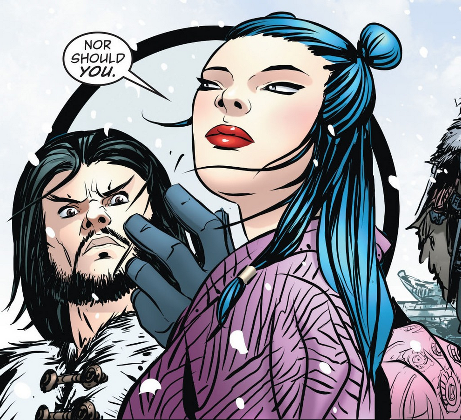 | ~ Tomoko startling Rapunzel in Fairest #8 — "The Hidden Kingdom Chapter One: Big in Japan" |