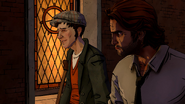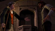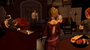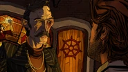 Bigby arrives at the door and opens it, revealing a portal. He runs into it and is transported to the lair, where he is greeted by Tiny Tim. Tim informs him that the Crooked Man is waiting for him, and escorts him to the meeting room. Bigby either allows Tim to introduce him or walks in by himself, and is met by several enemies he has previously faced, including Tweedle Dee, Tweedle Dum Georgie and Vivian, and the Jersey Devil. Jersey moves to attack Bigby, but is stopped by the Crooked Man. He thanks Tim for his service and dismisses him, then addresses the sheriff, offering him a seat and saying that they have much to discuss. Bigby can agree to do so, threaten him, or simply smoke, and the episode ends.